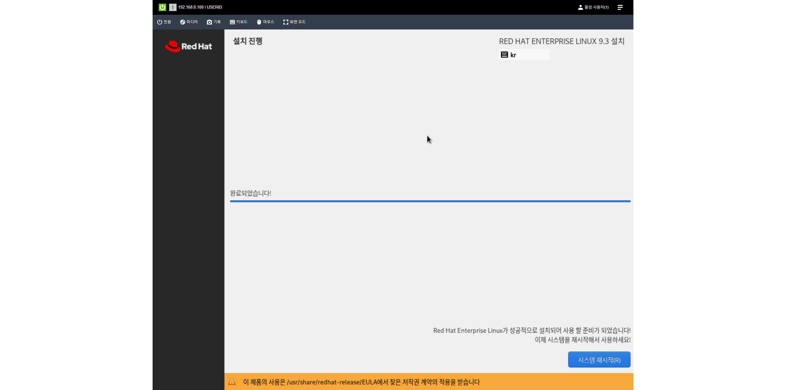 이로써 레노버 서버에 RHEL 9.3 설치가 완료되었습니다. 서버를 다양한 용도로 활용할 준비가 되었습니다. 추가적인 설정이나 질문이 있다면 댓글로 남겨주세요!