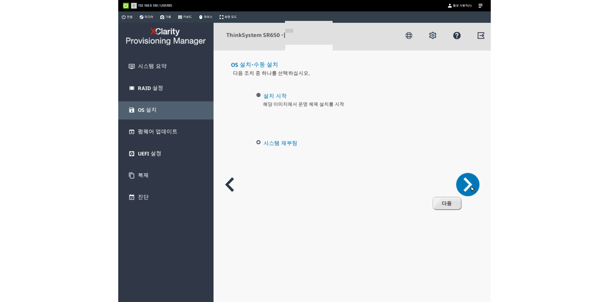 - 준비된 USB 드라이브를 서버에 삽입하고, 서버를 재부팅합니다.